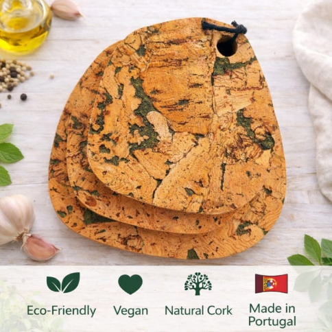 Bring natural style and smart protection to your table with this quality, eco-friendly, beautiful set of pebble shaped cork hot-pads. Made from water-resistant natural cork which is environmentally sourced from Portugal, they provide excellent heat insulation, keeping your surfaces safe from hot pots, and serving dishes.